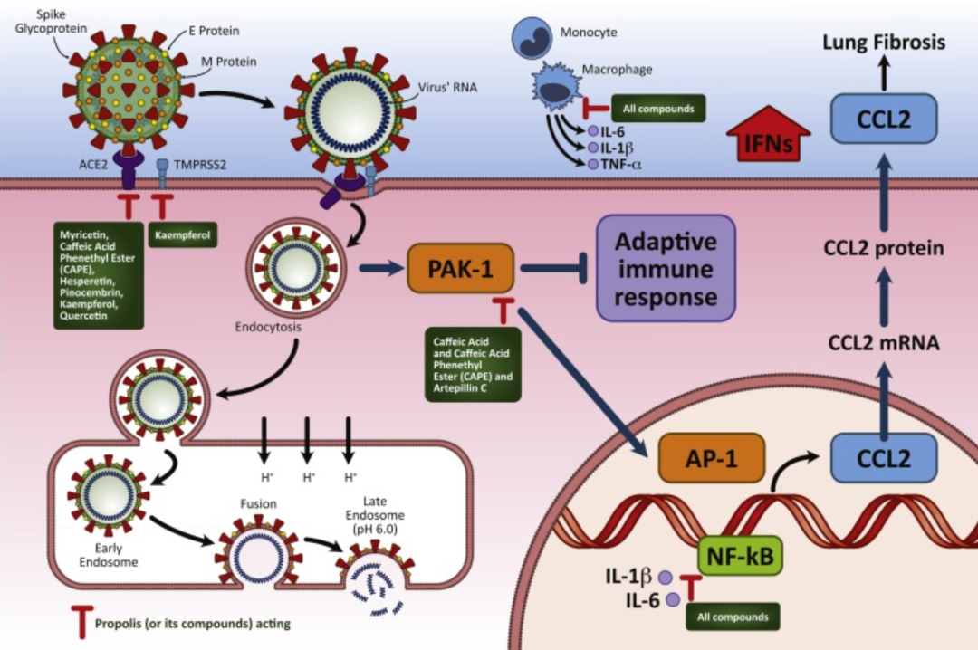 靶向病毒抑制:部分蜂膠成分與SARS?CoV?2關(guān)鍵蛋白(如 3CL^pro、ACE2)具有較高結(jié)合親和力,有潛在抗病毒作用。