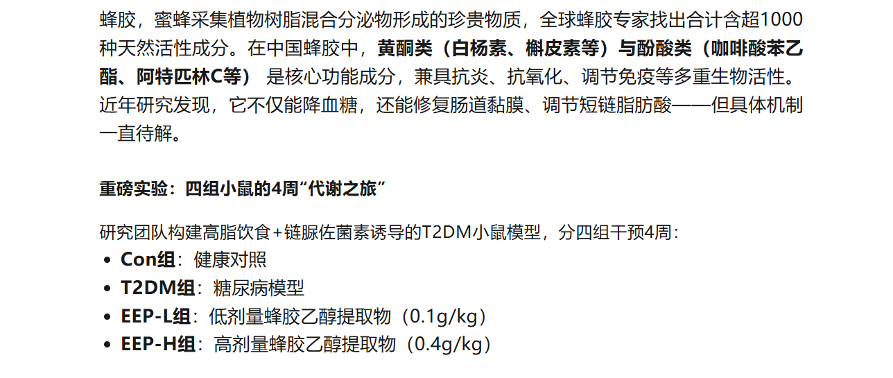 【科研速遞】蜂膠乙醇提取物如何“修復(fù)”糖尿病?糞便代謝組學(xué)揭開關(guān)鍵機(jī)制!